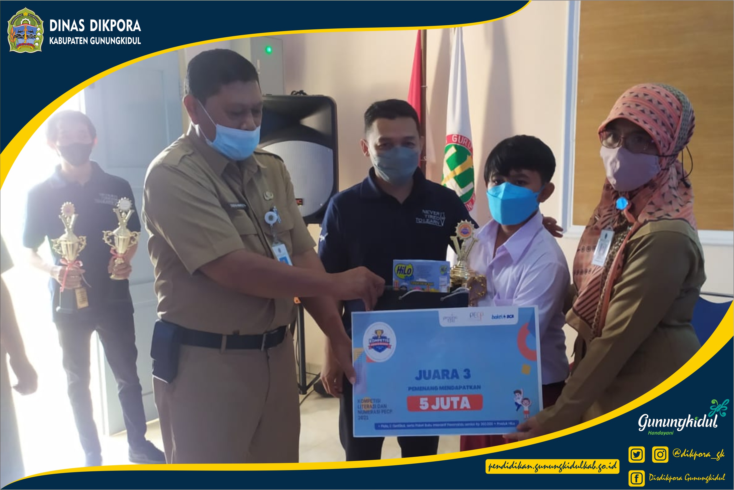 WONOSARI- Dinas Pendidikan, Pemuda, dan Olaharaga (Disdikpora) Kabupaten Gunungkidul melalui Bidang Sekolah Menegah Pertama (SMP) melaksanakan kegiatan penyerahan Trophy dan